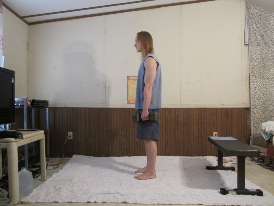 Dumbbell Calf Raise Pictures Demonstrating The Beginning, Middle, And End Of The Exercise